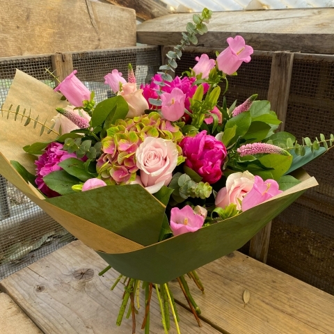 Introducing the exquisite Blushing Blooms bouquet, a delightful ensemble of pink flowers. Expertly handcrafted by our skilled florists, the Blushing Blooms bouquet arrives in water. With its harmonious blend of peonies, hydrangeas, and roses, the Blushing Blooms bouquet is a celebration of femininity, grace, and romance. It serves as a stunning gift for anniversaries, birthdays, or any other momentous occasion.